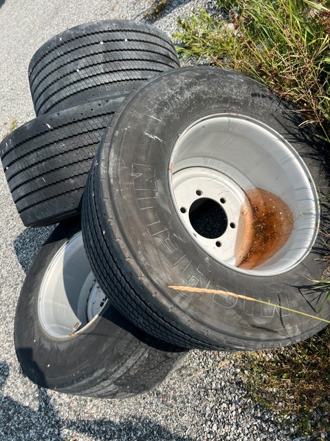 Diverse ødelagte dekk gis bort