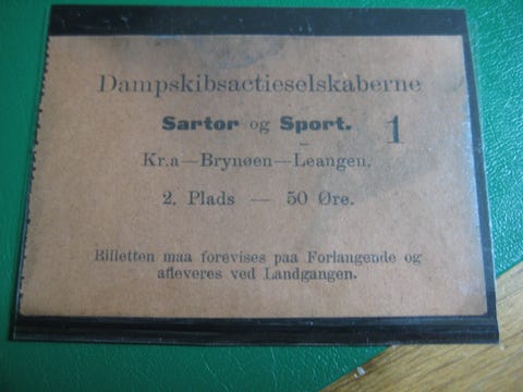 D/S SARTOR og SPORT bilett 50 øre KR.a. Brynøen-Leangen