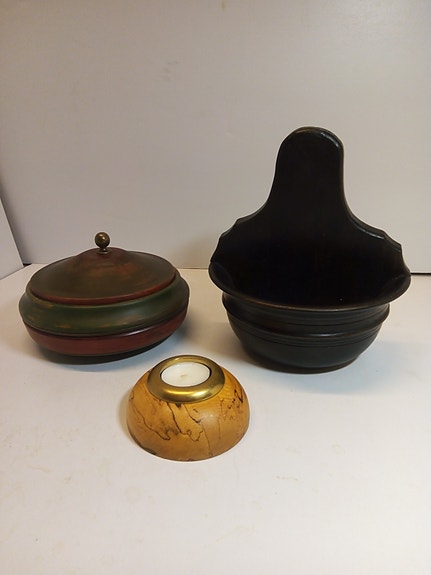 TREBOLLE m/lokk, TELYSSTAKE, vegghengt HALVBOLLE. Norsk håndverk, G I B U D.