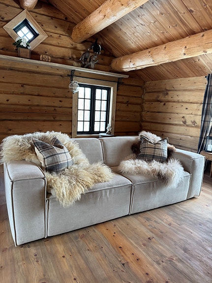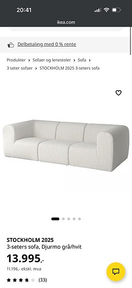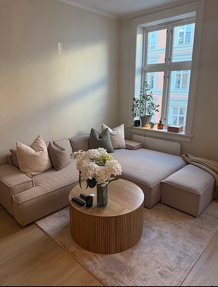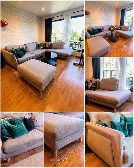 (Reservert) MOA sofa-sett (3-seter + 1,5-seter) i lys beige – svært pent brukt