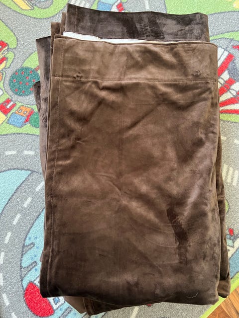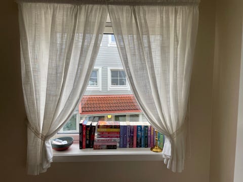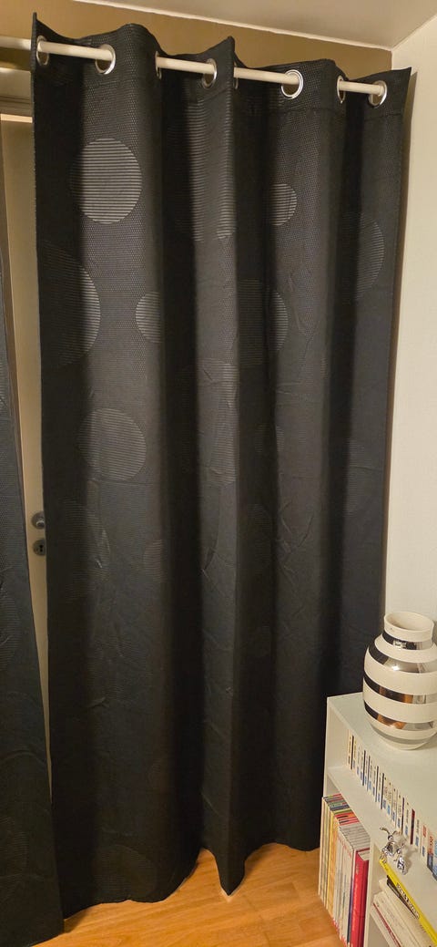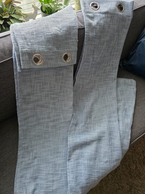 Lyse blå gardiner.