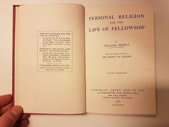 Personal Religion and the Life of Fellowship (1926)