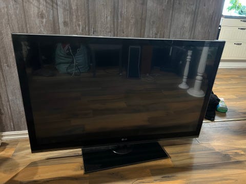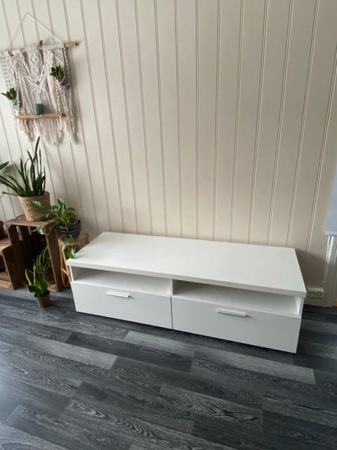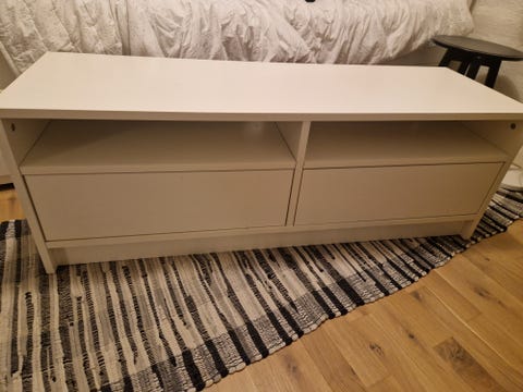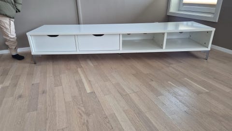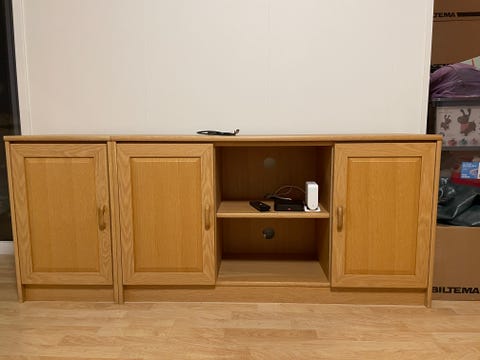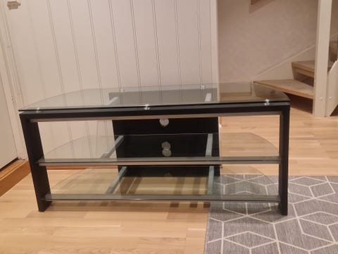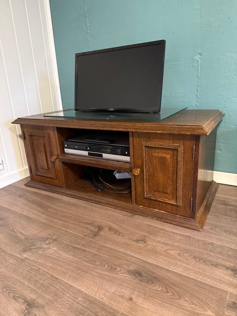 TV benk i eikelaminat gies bort