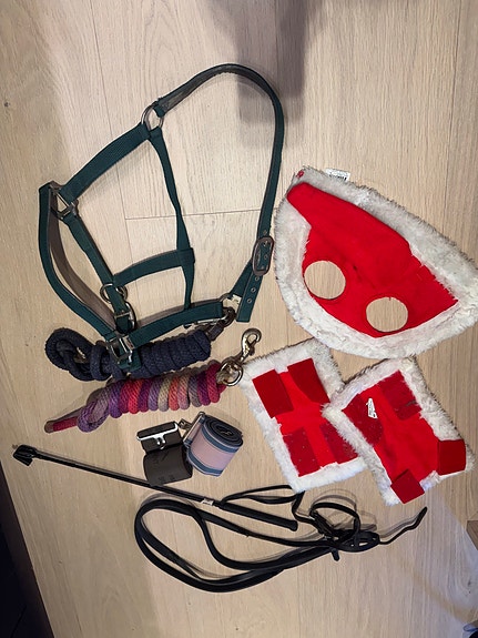 Utstyrspakke til hest med grime, tøyler og julesett mm