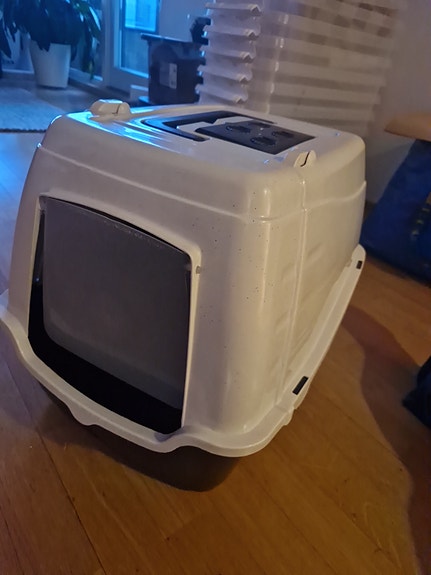 Lukket kattedo med dør offwhite/mørkeblå