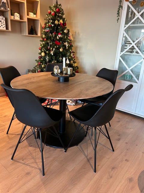 Rundt spisebord med 6 stoler