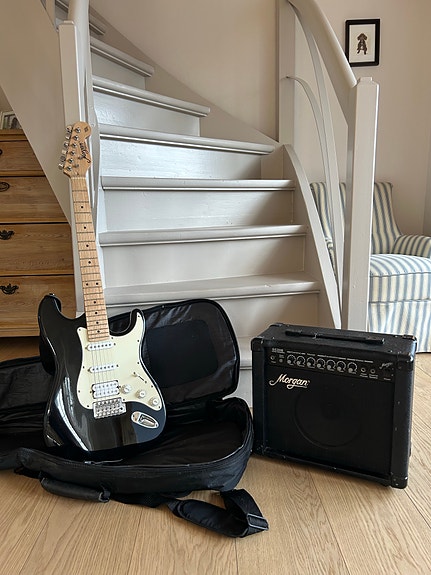 Morgan elektrisk gitar med forsterker, svart (reservert)