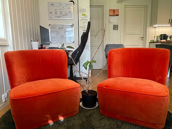 2 Oransje fløyelsstoler (myke og komfortable)