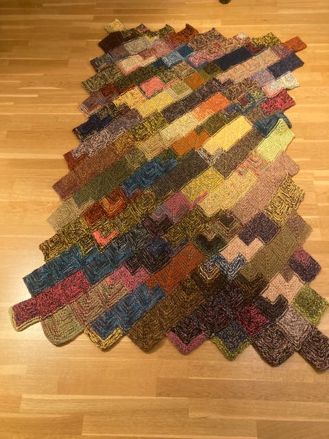 Strikket lappeteppe