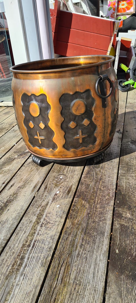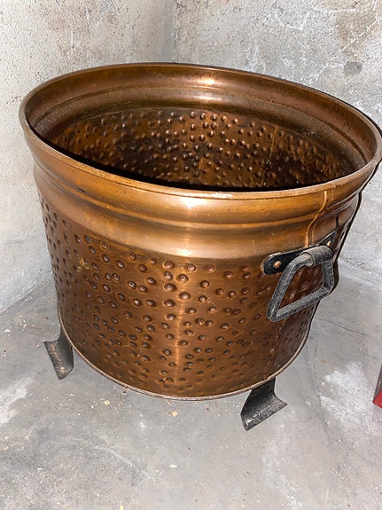Kobbergryte / vedkjele med dekor og håndtak Ø 40 cm