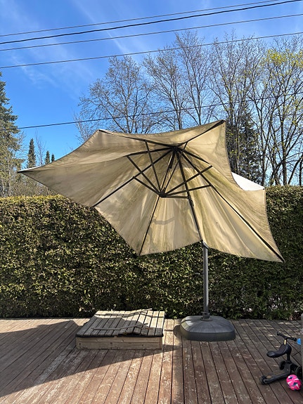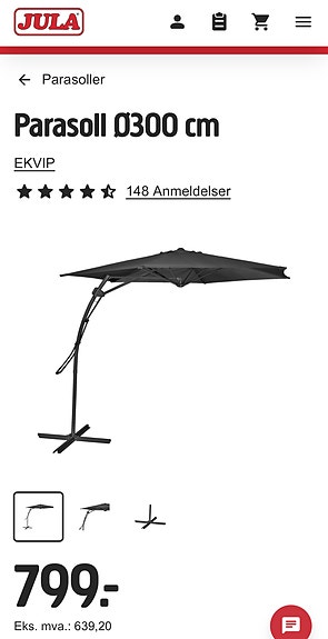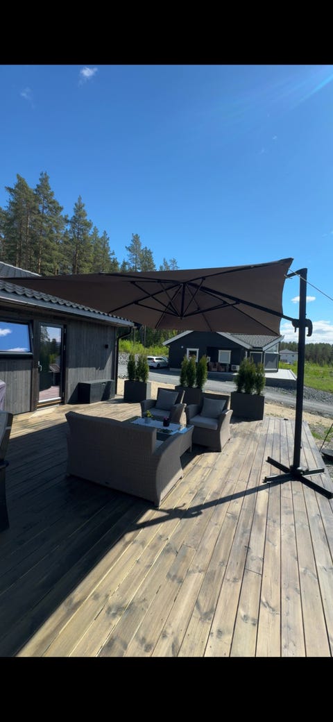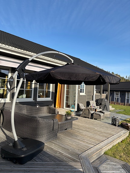 IKEA SEGLARÖ fritthengende parasoll med fot – stor og solid