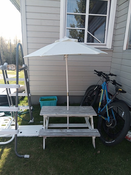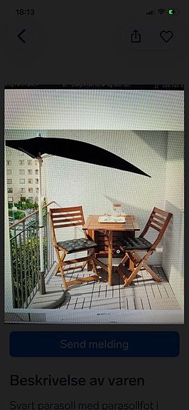 2 stoler 600,- parasoll 400,- bord er gratis