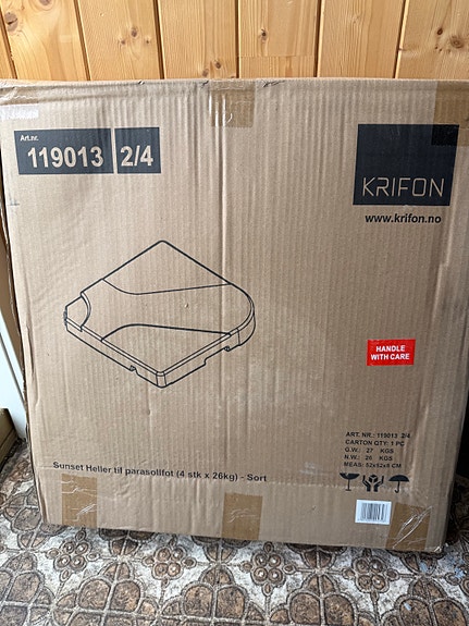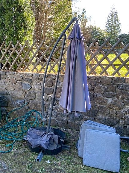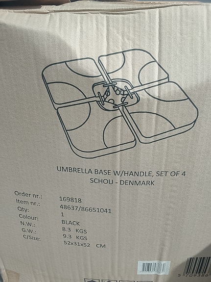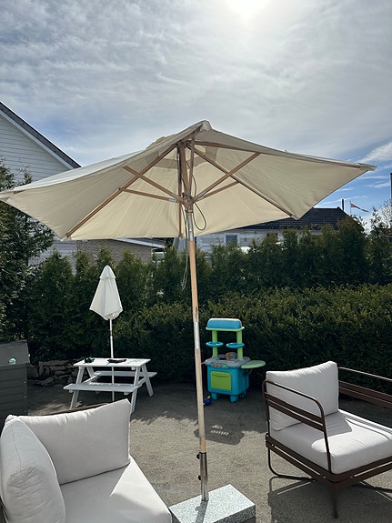 Parasoll og fot selges samlet