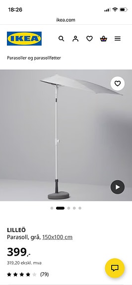 IKEA Lilleö Parasoll 150 x 100 cm grå uten fot