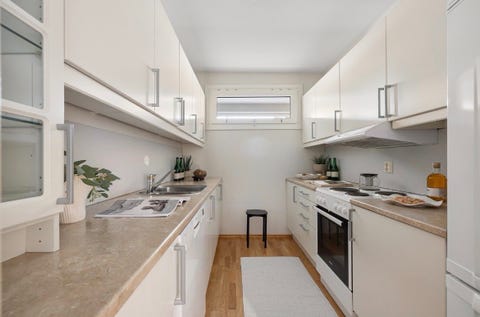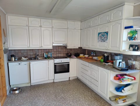 Kjøkkeninnredning med hvitevarer