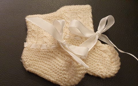 Strikkesokker til nyfødt.