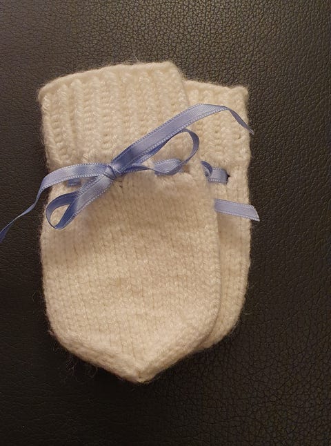 Strikkevotter til nyfødt baby.
