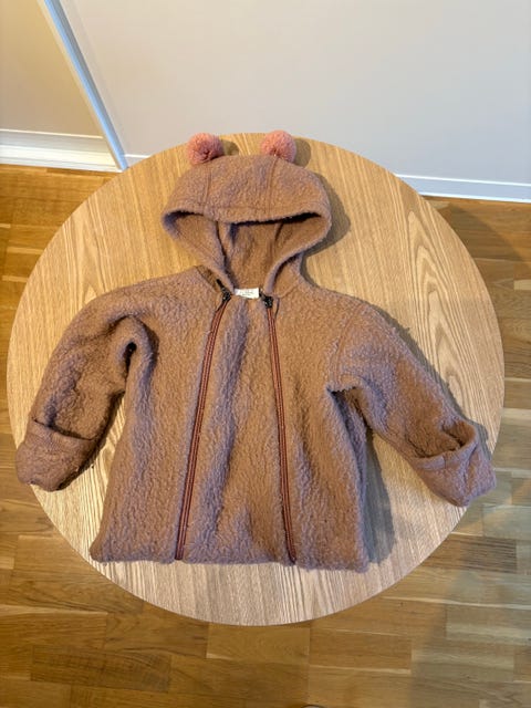 Høst/vinter Str 74 ull heldress HustClaire med hette, lommer for hender/fotter