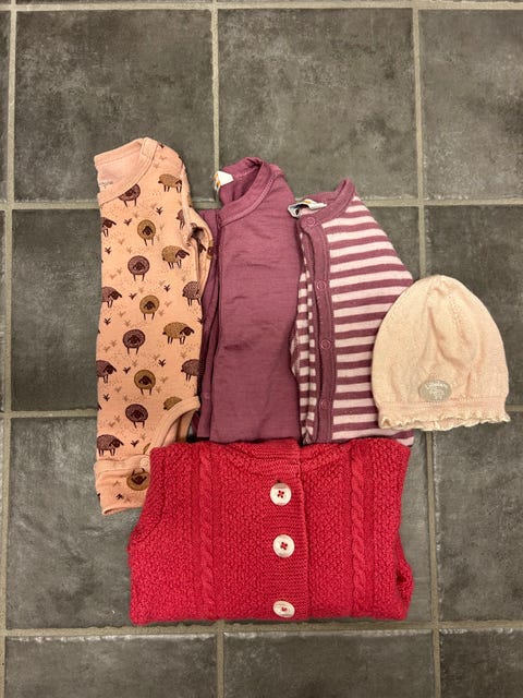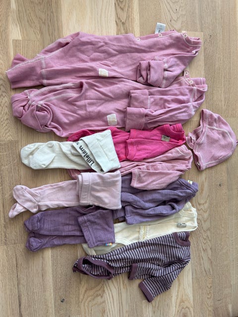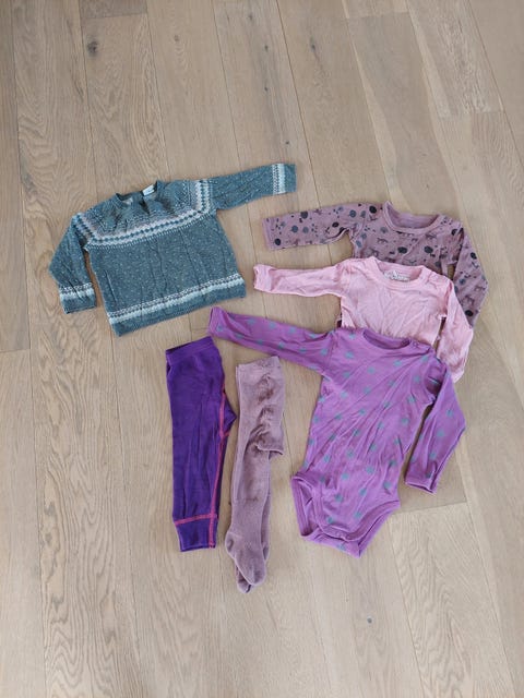 Variert klespakke til jente, med bl.a. ull, varm fleece og kjoler (122-128)