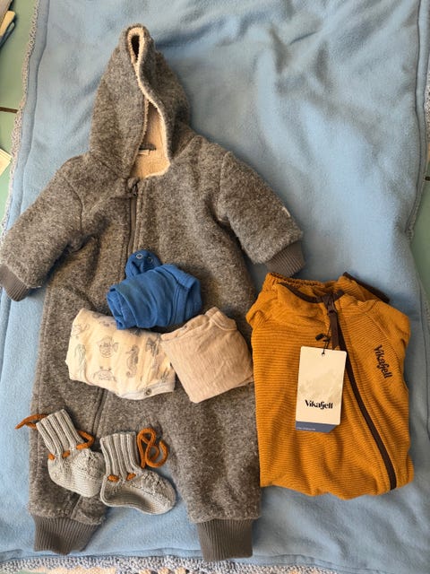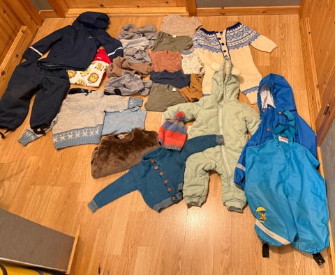 Stor klespakke til gutt 50, 56, 62 og 68 . 58 plagg ull nyfødt ull baby