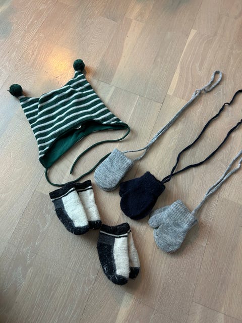 Ullpakke nyfødt 1mnd med god pysj, 4 ullbody, stilongs og strømpebukse
