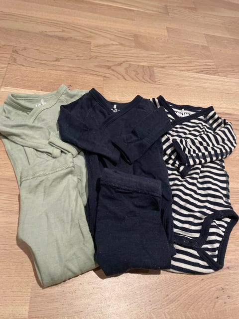 Ullpakke str 90/98: Bodyer fra Hust & Claire i bambus/ull, Safa ullongser