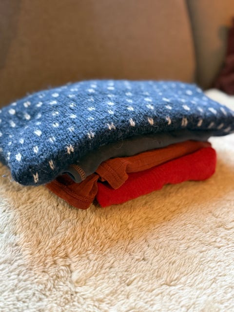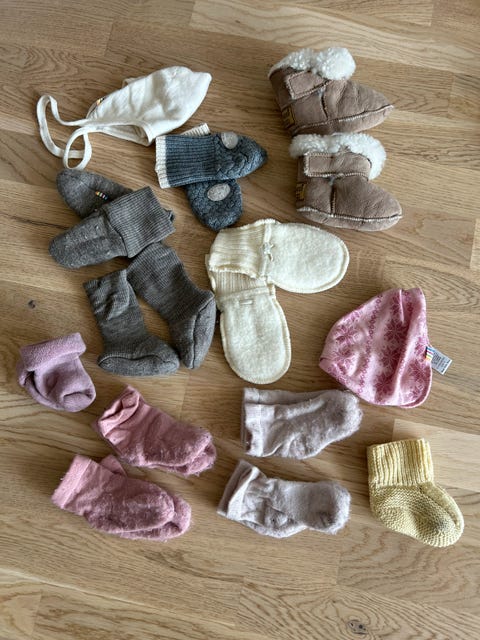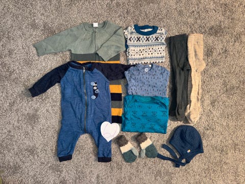 @U22 str 146-152 Ullpakke - God og varm Ull - noe har flekker og små ullhull