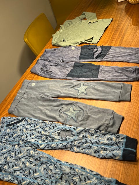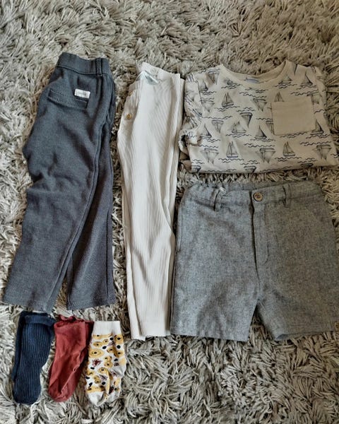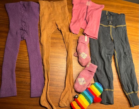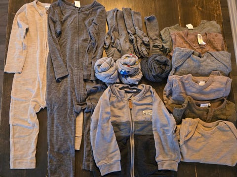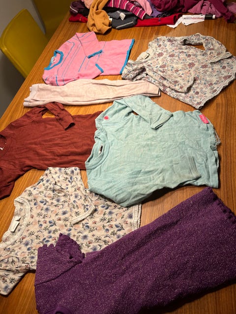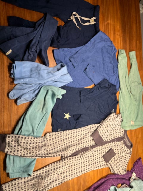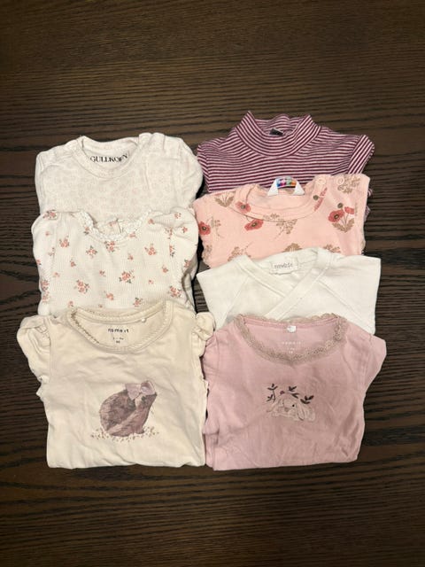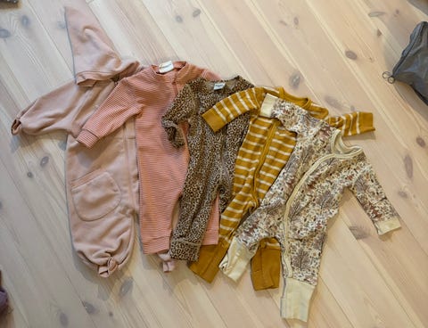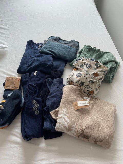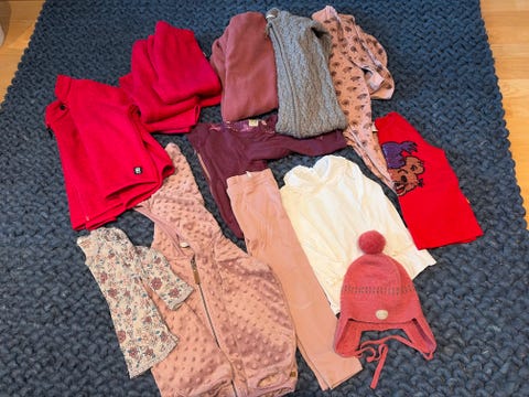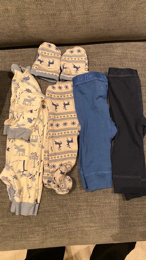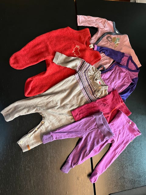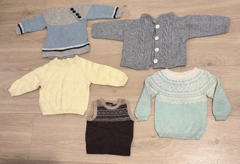 Klespakke i størrelse 50. Ull og hjemmestrikket klær. 2 bleiepakker