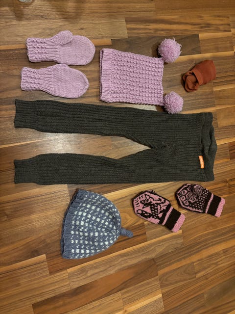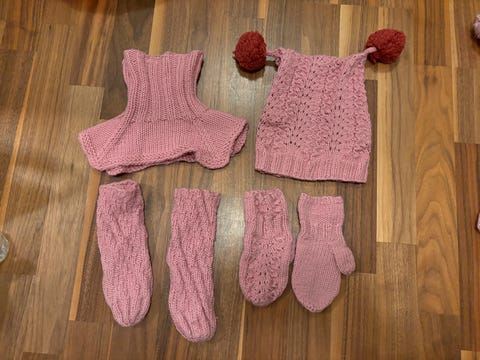 Hjemmestrikka baby pose