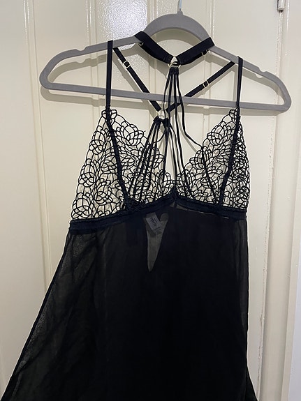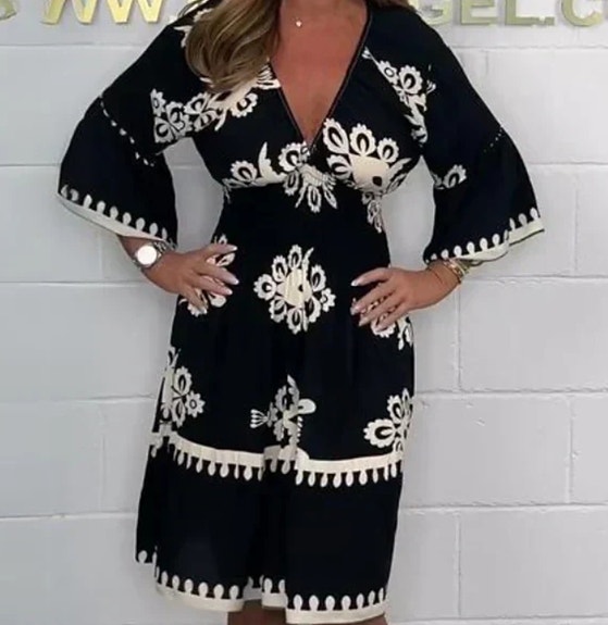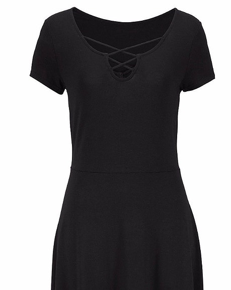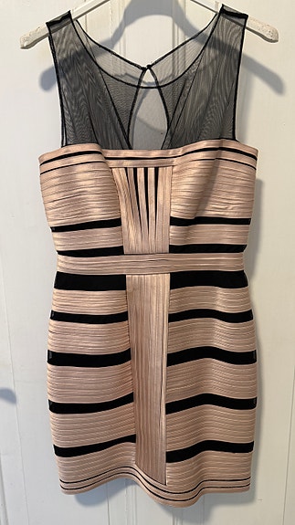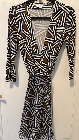 Mexx- kjole med flere farget og dyp utringning i str.M