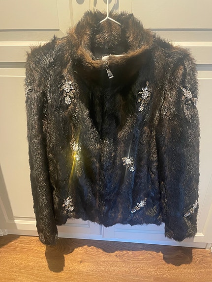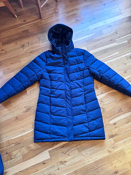 Kåpe fra Oasis str 34. Rutet og går til midt på låret