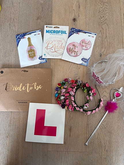 Utdrikningslag pakke med bride to be-utstyr og pynt