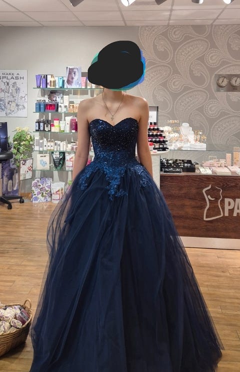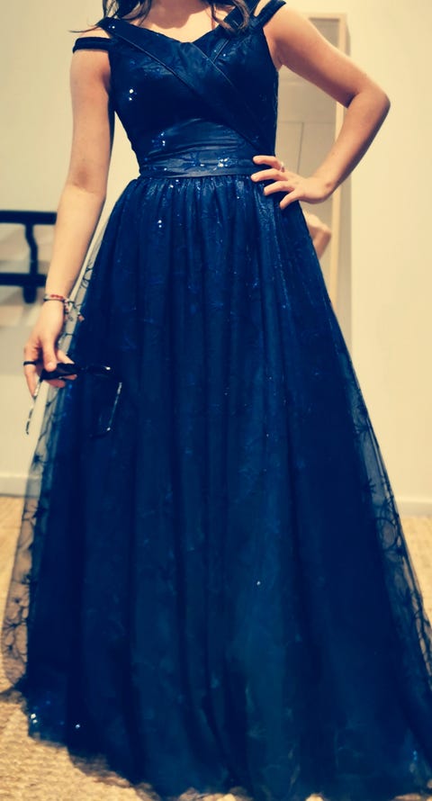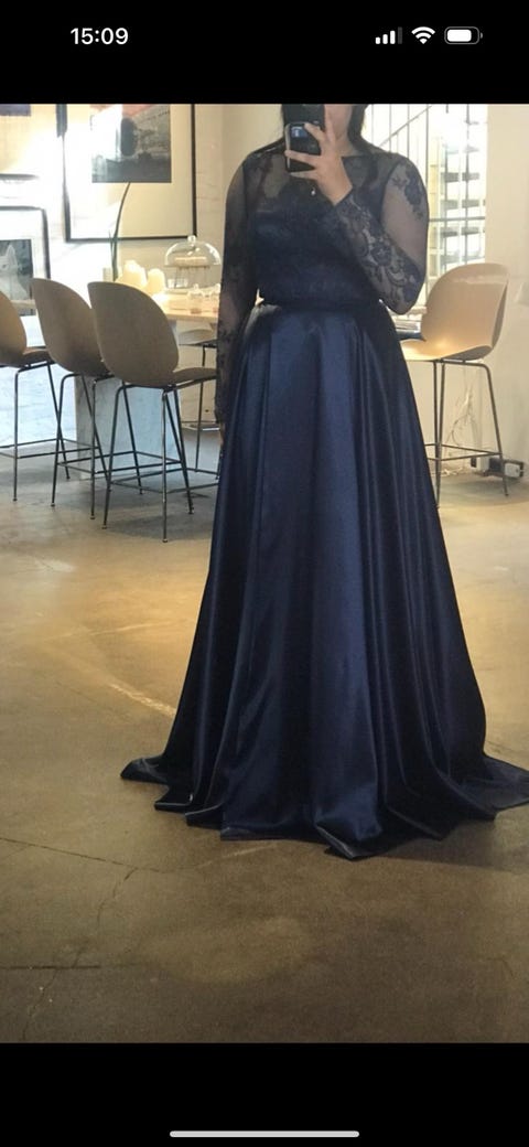 Nydelig mørkeblå ballkjole fra Alexandra Ritzi (justerbar S-L) leies ut💙