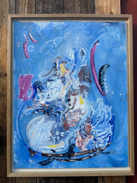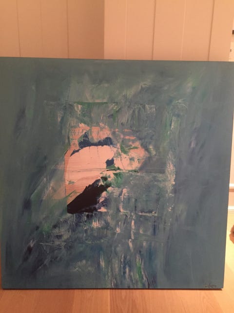 Abstrakt maleri til jul, innrammet.