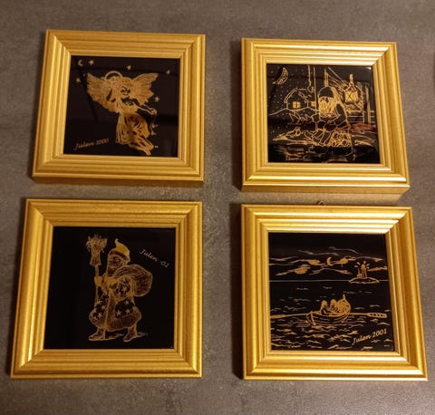 Abstrakt maleri til jul, innrammet
