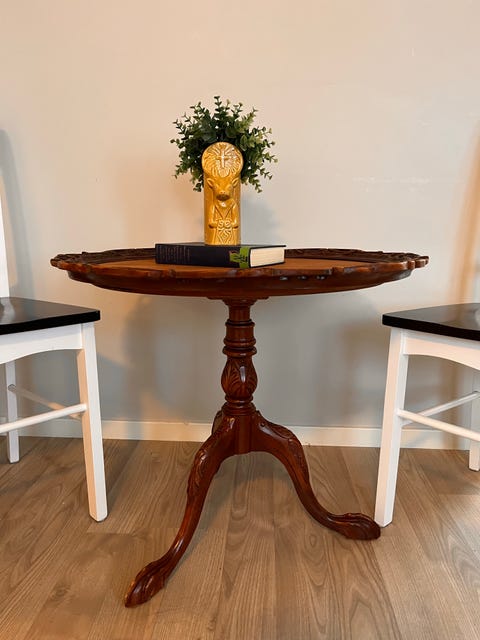 Antikk rundt sidebord i tre