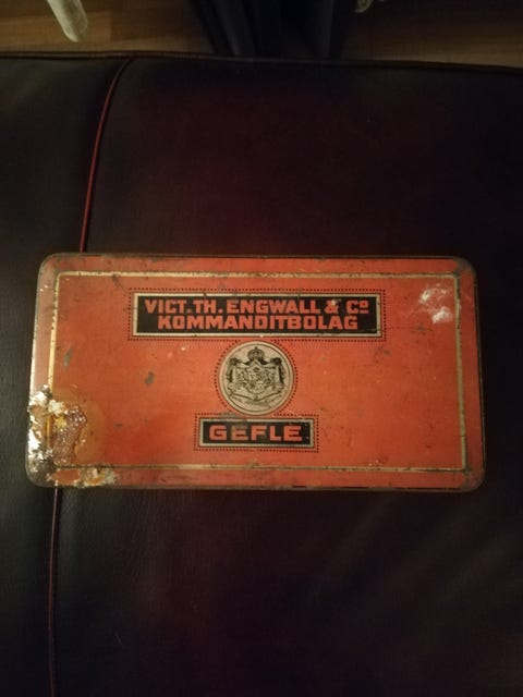 Antikk Gevalia metallboks