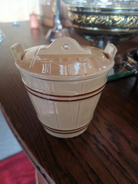 Antikk fletta kurv med lokk