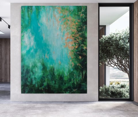 Stort, lyst maleri, 90x90cm.