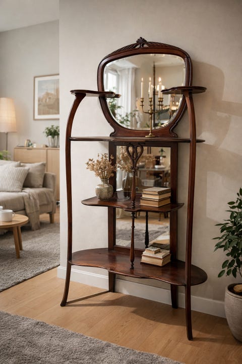 Gamle speil, stoler, lamper