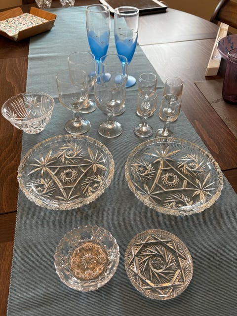 Diverse glass skåler og drikkeglass