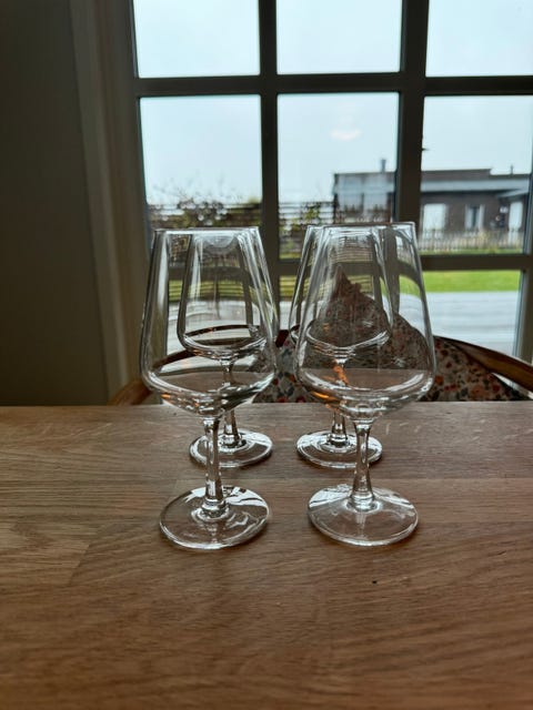 Fire små glass selges, kr 30.