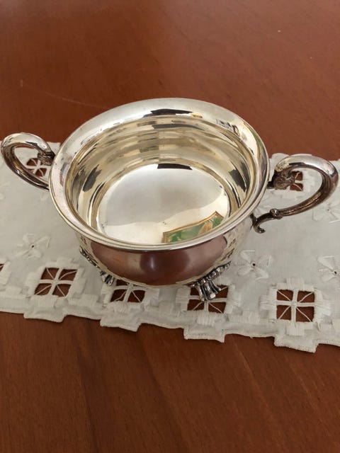 Sukkerskål i sølvplett