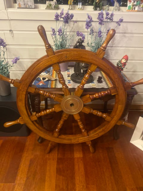 Skipsratt til dekor. Stort ratt.