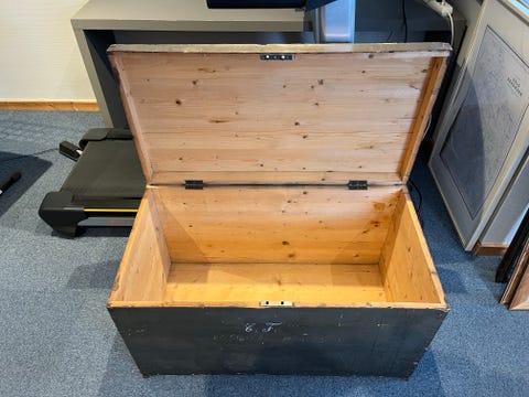 Antikk trekiste med rosemaling