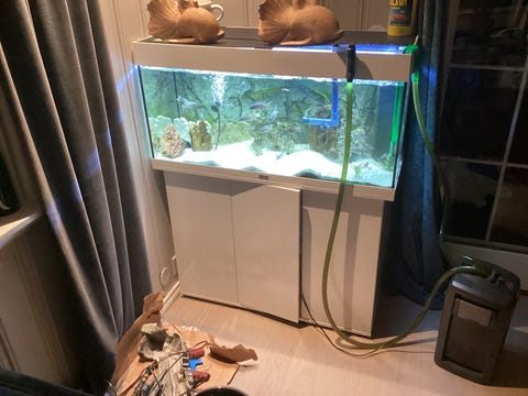 Helglass akvarie selges.