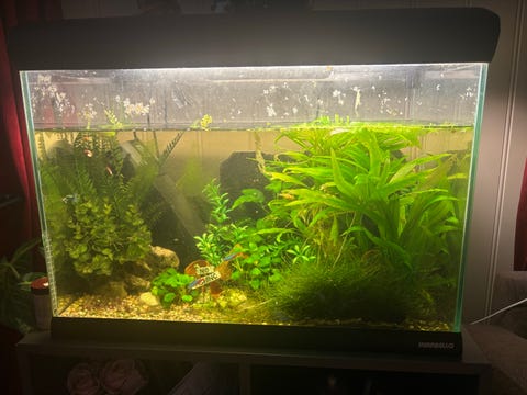 Akvarium med planter og fisk