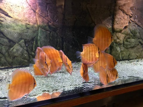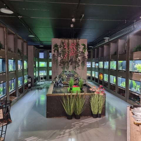 Akvarium med fisk og tilbehør