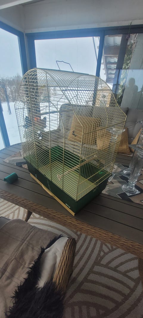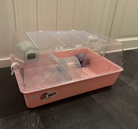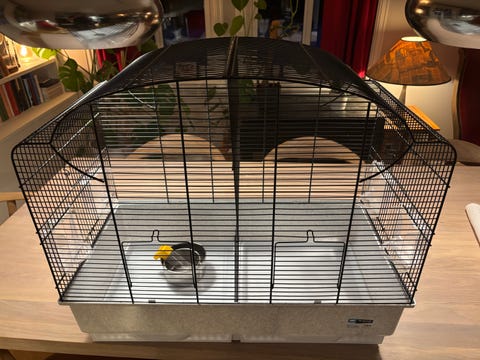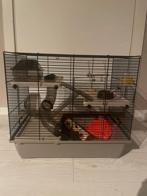 Smådyrbur med tilbehør og strø