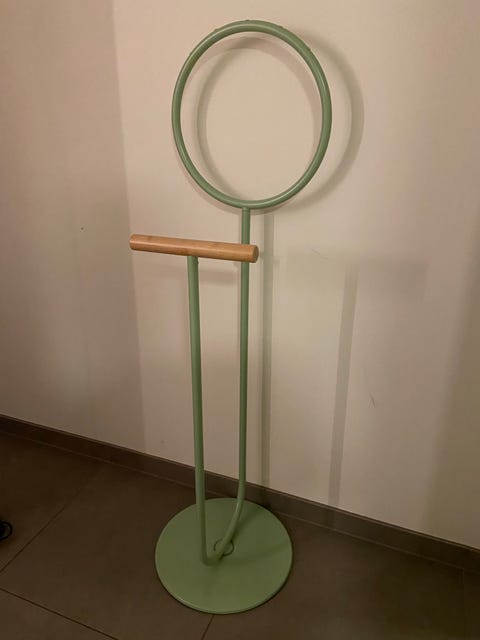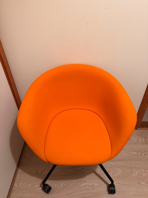 Mørk blå skinnstol.